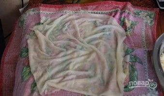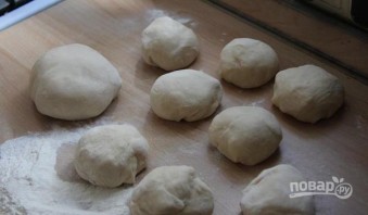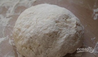 Добавляя порциями муку, замесите эластичное тесто. Хорошо обомните его в течение 5 минут, а затем отложите.