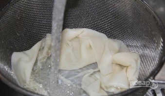 Затем промойте тесто под проточной водой через дуршлаг.