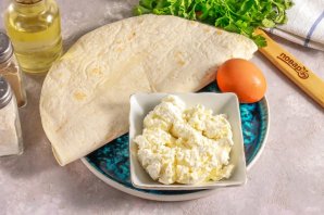 В середину круглого или на край квадратного лаваша выложите 1-1,5 ст.л. творожной начинки.