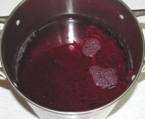 У велику каструлю наливаємо 1,5 літри холодної кип'яченої води і кладемо туди буряк.