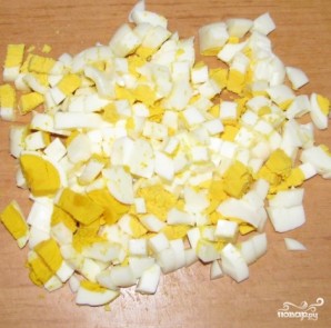 Дрібно нарізаємо варені яйця.