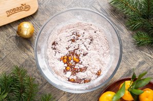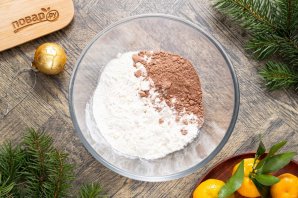 В глубокую миску просейте муку с какао. Все перемешайте, чтобы не осталось комочков.