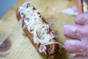 2. Верхушку сосиски заполните смесью из квашеной капусты и лука.