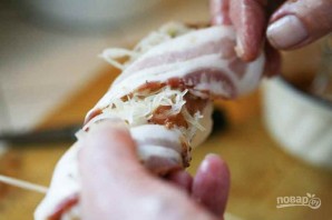 4. Бекон закрепите зубочистками, чтобы он не распался.