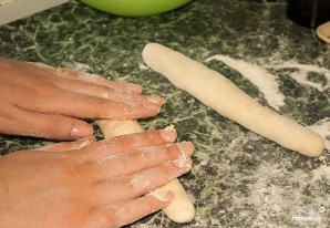 2. Розділіть тісто на декілька частин і розкачайте у трубочки.