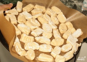 5. Викладіть ньоккі на паперовий пергамент і поставте в морозильну камеру, щоб трохи змерзли.