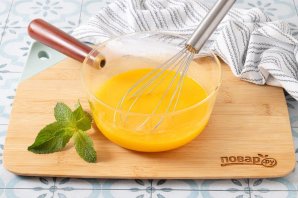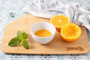 Із апельсина вичавте сік. Вам знадобиться близько 150 мл свіжовичавленого апельсинового соку.