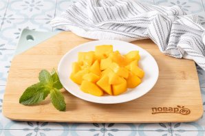 Манго очистіть від шкіри і наріжте скибочками.