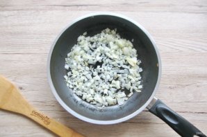 Лук очистите, ополосните, нарежьте мелко, выложите в разогретую сковороду с маслом и обжаривайте до прозрачности лука.