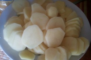 1. Форму для запікання трохи змастіть рослинним або вершковим маслом. Картоплю, кабачки та помідори наріжте якомога тонкішими кружечками.