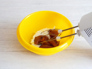 К взбитой массе добавьте яйцо. Еще раз взбейте.