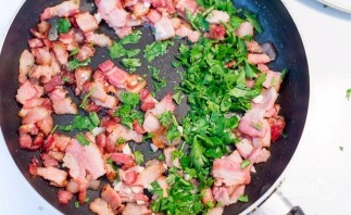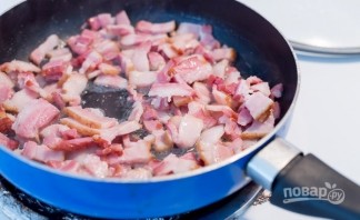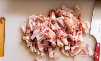 Бекон наріжте невеликими брусочками.