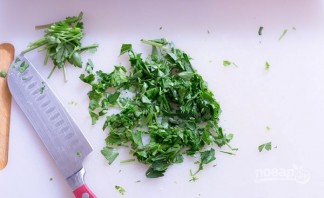 Дрібно наріжте часник і петрушку.