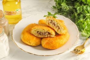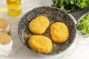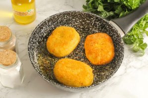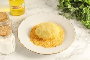 Залепите края картофельных биточков и округлите их, чтобы получились заготовки в виде котлет. Обпанируйте их со всех сторон в панировочных сухарях.
