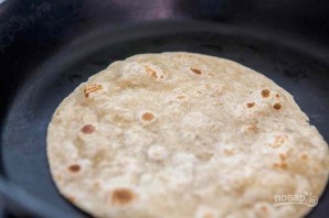 1. Разогрейте сковороду, выложите на нее лепешку, обжаривайте ее до появления пузырьков.