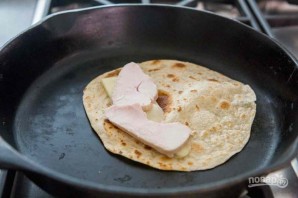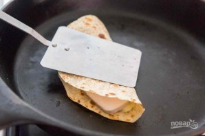 3. Накройте мясо второй половинкой лепешки и прижмите лопаткой, обжаривайте несколько секунд.