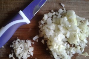Дві головки цибулі та часник очистіть і дрібно наріжте.