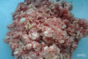 До фаршу додайте цибулю, перець, часник, петрушку та сіль. Добре перемішайте.