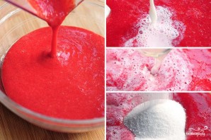 1. Помістіть полуницю в кухонний комбайн або блендер і змішуйте до утворення однорідного пюре. Якщо ви хочете позбутися дрібних насінин, протріть полуницю крізь сито. В іншому випадку перелийте отримане полуничне пюре в миску.