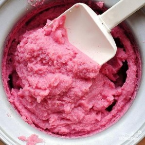 4. Викласти охолоджену полуничну суміш у морозивницю і заморозити згідно з інструкцією виробника.