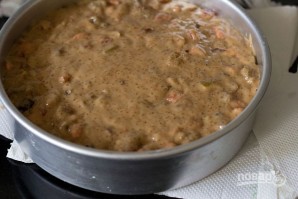 10. Жаропрочную форму смажьте маслом и выложите в нее тесто. Разровняйте и выпекайте в духовке при температуре 180 градусов около 1.5 часов до готовности (время зависит от размера формы).