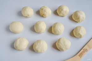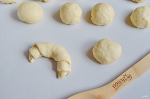 Разделите тесто на части, каждую скатайте в шарик. Количество частей на ваше усмотрение, от этого будет зависеть только размер круассана. Я разделила на 11.