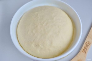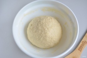 Хорошо вымешайте тесто, оно не липкое, но мягкое и пластичное. Накройте салфеткой и уберите в теплое место на 1 час.