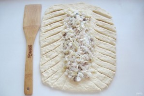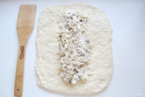 Тесто раскатайте в пласт. Выложите начинку посередине теста.