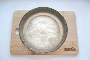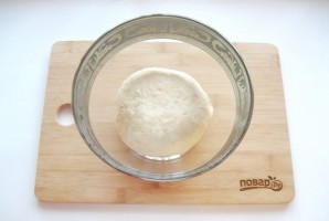Поставьте тесто в теплое место, предварительно накрыв его пищевой пленкой. Через 60-80 минут оно подойдет и будет готово к работе.