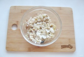 Начинку посолите по вкусу и перемешайте. Можно поперчить.