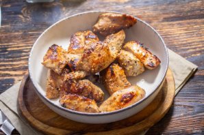 Доводить куриное филе до готовности не нужно, а лишь хорошо подрумянить. Курицу со сковороды переложите на тарелку.
