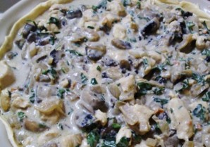 Все компоненты курника надо обжарить, приправить, затем сформировать пирог и запекать в духовке. Пока курник с курицей и грибами запекается, приготовьте овощной салат. Он отлично сочетается с нашим пирогом Выпечка готова. Подавайте к столу.