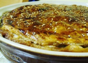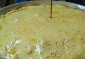 Отправьте пирог в духовку разогретую до 180 градусов на 40 минут. Готовый пирог оставьте при комнатной температуре на 15 минут.