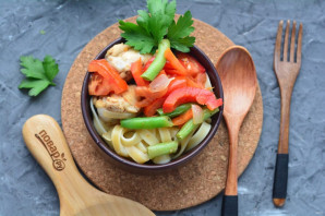 Ідеально для обіду. Лагман із стручковою фасоллю виходить не тільки смачним, а й корисним. Також додайте помідори, цибулю, солодкий перець та моркву. М'ясо використовуйте будь-яке