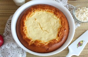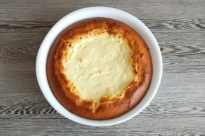 Через указанное время проверьте готовность ватрушки. Начинка должна быть упругой, тесто проткните деревянной шпажкой, она должна быть сухой. Готовый пирог охладите в форме.