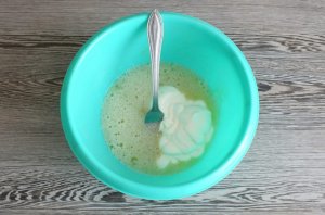 В тесто добавьте растительное масло и еще раз хорошо перемешайте.