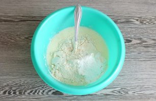 Всыпьте муку, разрыхлитель для теста. Перемешайте.