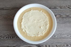 Форму для выпечки смажьте сливочным маслом. Перелейте в неё подготовленное тесто.