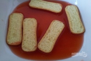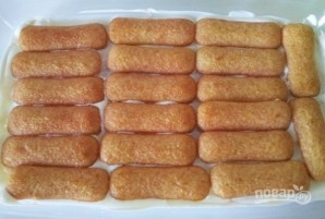 6. … відразу ж викладайте його в підготовлене блюдо. Це буде перший шар тірамісу.