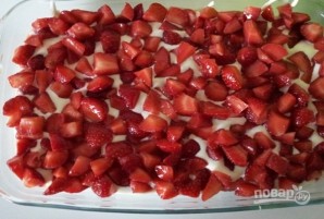8. На печиво покладіть шар полуниці. Продовжуйте чергувати шари, останнім має бути крем.
