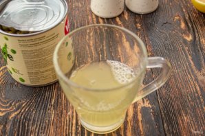 Відкрийте банку з горошком, обережно вилийте в склянку 50 мл розсолу (аквафаби).