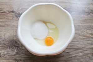 В миску разбейте яйцо, добавьте сахар.