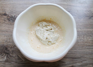 Яичный белок взбейте до мягких пиков и аккуратно перемешайте до однородности.