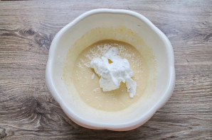 Добавьте мягкое масло и снова все перемешайте до однородности.