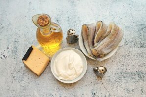 Подготовьте все необходимые ингредиенты для приготовления минтая в сметане с сыром в духовке.