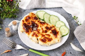 Запекайте минтай в горячей духовке при температуре 180 градусов в течение 30 минут. Минтай в сметане с сыром в духовке готов.