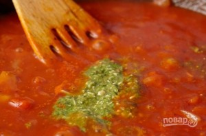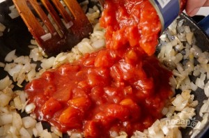 Смажте цибулю на вершковому маслі, потім додайте томатний соус і потуште 5-7 хвилин.