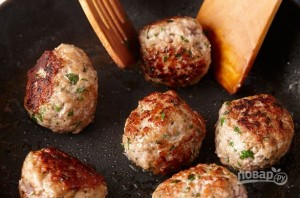 На сковороді з розігрітим маслом смажте тефтельки до золотисто-коричневого кольору.