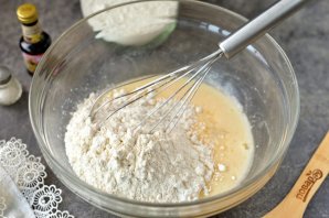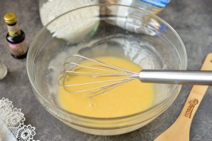 Всыпьте крахмал, соль, влейте экстракт ванили, подсыпайте муку постепенно. Ее количество может зависеть от размера яйца.