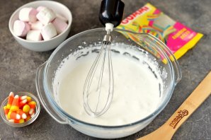 Белок куриного яйца взбейте с оставшимися 100 грамм сахарной пудры до глянцевой однородной глазури, если есть в доме лимон — влейте немного лимонного сока.